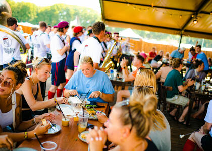 Van dat muffe tentje, dito slaapzak en lek luchtbed krijg je ook wel een keer genoeg. En daarom zijn er de buurtkroegen. Vier etablissementen, verdeeld over de groene campingweides, alwaar doldrieste uitbaters de glazen schuimend voltappen.