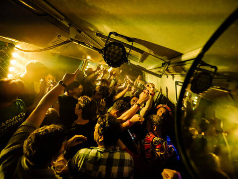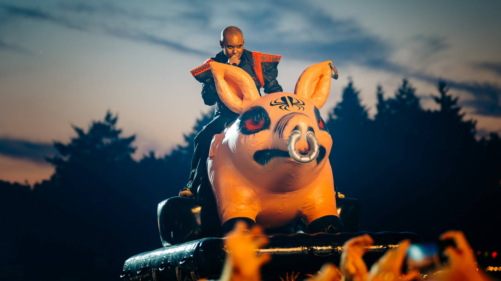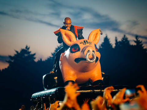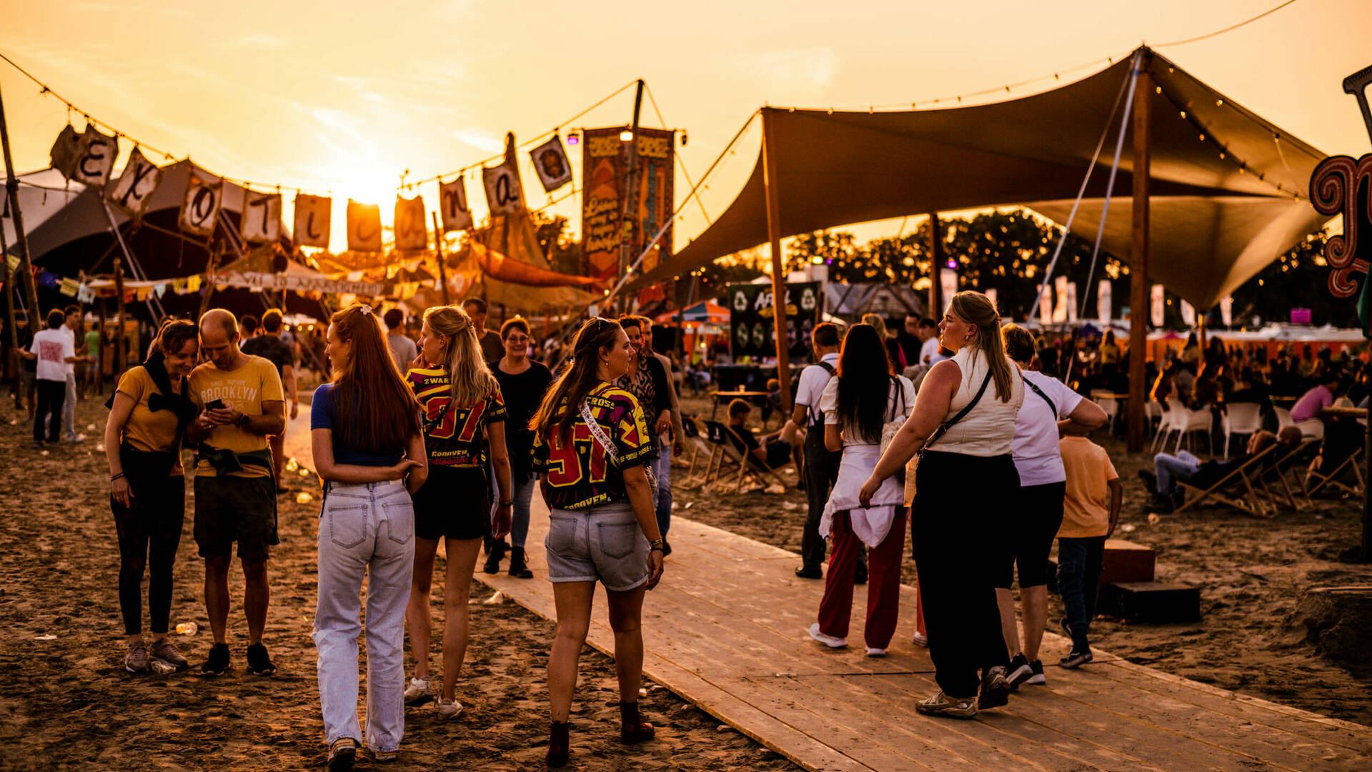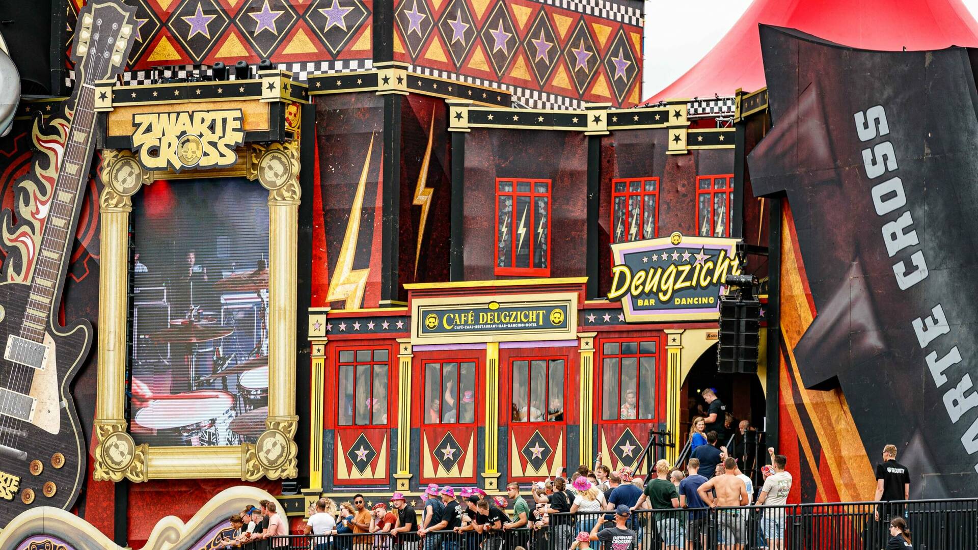 Typhoon sprak het publiek toe zoals alleen hij dat kan. Hij luchtte zijn hart en vulde zo de harten van de toehoorders. Tijdens zijn bevlogen betoog voor de vrede werd letterlijk een rode lijn getrokken, van vooraan het podium tot ver achterin het festivalveld. De bezoekers van Café Deugzicht, de oergezellige bruine kroeg op grote hoogte ín het Hoofdpodium hadden ongetwijfeld het beste zicht op deze actie.