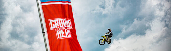 Ground Hero is de plek waar onverschrokken vuurvreters door de lucht vliegen op motoren of fietsen. FMX’ers, BMX’ers en een skater geven shows weg vol backflips, heelclickers en 360’s waar je het kippenvel van op de pens krijgt.
