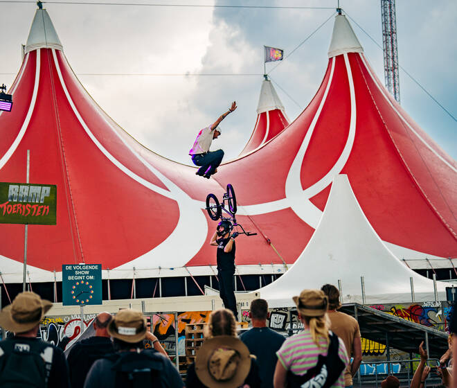 En alsof dat nog niet genoeg is, kun je in de Megatent ook FMX’ers over het podium zien vliegen!