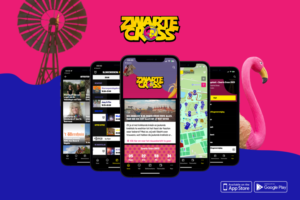 De beste voorbereiding op de Zwarte Cross: download alvast onze app! Hierin vind je het blokkenschema en de plattegrond, maar ook een heleboel leuke en handige extra’s, zoals: