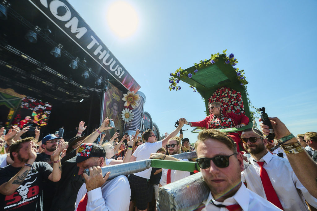 Hallo bloemenjurk-kinderen, we gaan zo lekker als het XXL-carbidkanon op de crossbaan. De ochtend begon met een brok in onze keel die we niet zomaar weggespoeld kregen: Tante Rikie nam afscheid. En! Hoe! Het werd een heerlijk vrolijk en spectaculair chaotisch Defilé. Frans Bauer was erbij met lieve woorden die Rikie tot tranen roerden. Hij zong ‘Oerend Hard’ en ‘Du Hast’ van Rammstein en Hoofd, schouders knie & teen ontbrak natuurlijk niet. Alles werd door duizenden en duizenden meegezongen en net toen we dachten dat we alles gehad hadden: Rata! Rata! Ratatatatata! Juist: ‘Heb je even voor mij’ als klapstuk.