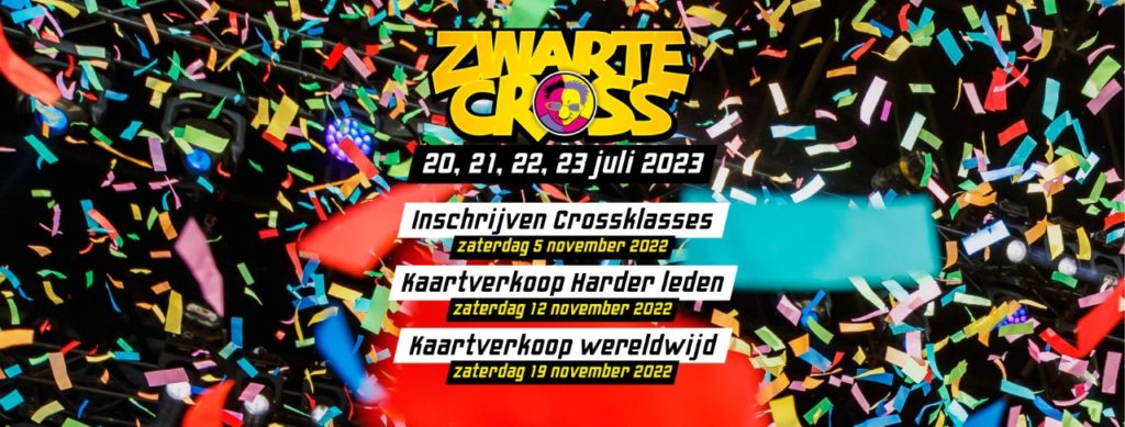 De data voor de 25e editie, de start van de voorverkoop en inschrijving zijn ook al bekend. Volgend jaar zal de Zwarte Cross plaatsvinden op 20-21-22-23 juli 2023. De inschrijving voor de crossklasses start op 5 november 2022. Vanaf 12 november kunnen leden van de Zwarte Cross fanclub ‘Harder!’ kaarten bestellen en een week later, op 19 november, start de voorverkoop voor de rest van de wereld.