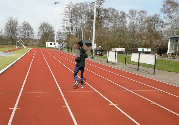 Sinds begin maart zijn er geen gezamenlijke trainingen meer. Een week later werd ook besloten dat er geen trainingen meer zijn in kleine groepjes met het Topteam van Hanzesport. Erg jammer, want we konden elkaar juist beter maken. Doordat bijna alles stil ligt in Nederland is Ibrahim weer thuis komen wonen voor deze periode. Dat betekent dus wel dat ik een trainingsmaatje bij mij in huis heb, net als twee jaar geleden. We trainen dan ook regelmatig samen. Lange duurlopen doe ik meestal wel alleen of ik vraag of een vriend om mee te gaan op de fiets. Daarnaast train ik ook één keer per week met Conner. Met hem train ik normaal gesproken altijd samen in Zutphen. In dit geval is het wel een geluk dat hardlopen een individuele sport is. Het kan altijd doorgaan, zolang ik maar op 1,5 meter afstand blijf van de ander. De meeste trainingen doe ik aan het einde van de dag. Want ook ik moet net als ieder ander met school aan de slag. Toch vind ik het wel heel fijn dat ik nu echt de tijd heb om te trainen en dat ik zelf kan bepalen wanneer ik dat doe. Mijn trainer, Herman, stuurt mij iedere week een schema met daarin alles wat ik moet doen en op welke dag ik dat moet doen. Dit geeft mij een houvast. Ik baal natuurlijk wel van het feit dat alle atletiekwedstrijden voor 2020 zijn afgelast, want mijn doel was toch wel om het EK onder de 18 te lopen. Deze vervalt tot nu toe dus ook en het is niet duidelijk of die nog plaats gaat vinden, wellicht in 2021. Dat is dan ook waar ik op hoop.