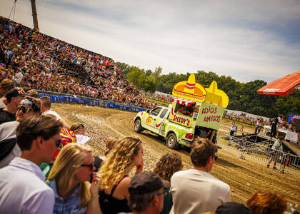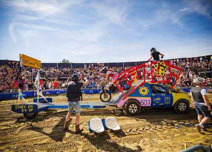 Dat terwijl er door de deelnemers plankgas gecrosst wordt en de tribunes vol zitten met bezoekers die meezingen met de Loco’s of bloedfanatiek de deelnemers aanmoedigen. Tussen de rondes door hoef je je dus geen moment te vervelen. De Loco Arena is de gezelligste heksenketel van Nederland, met drie dagen lang poespas en gezelligheid met de Loco Loco Discoshow & vaste gast Danny “HANDJESSS” Panadero. Wie er verder langskomt, is een verrassing!