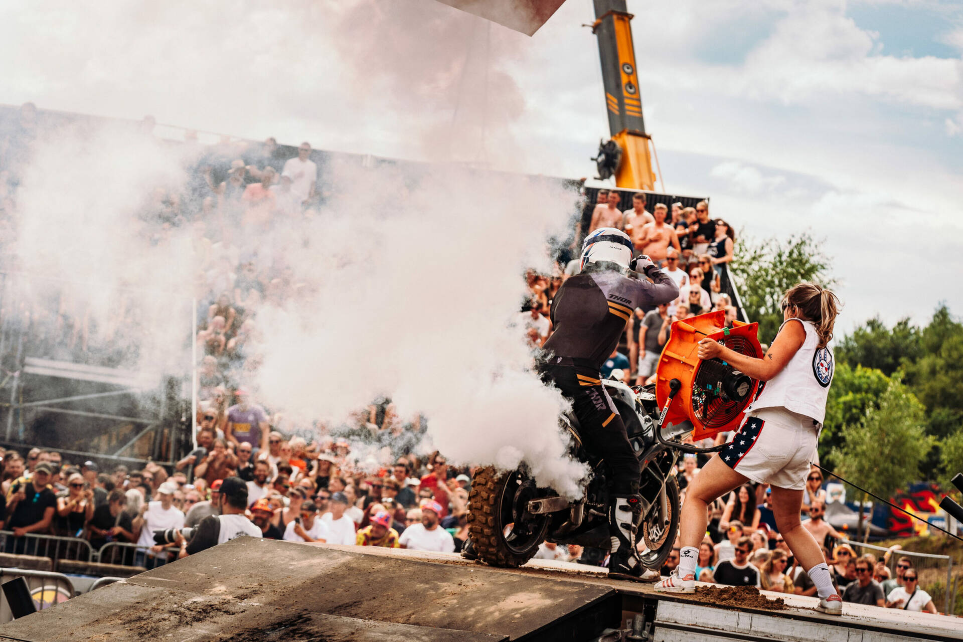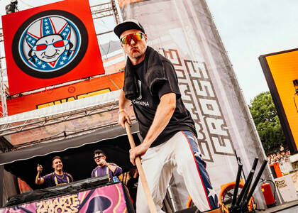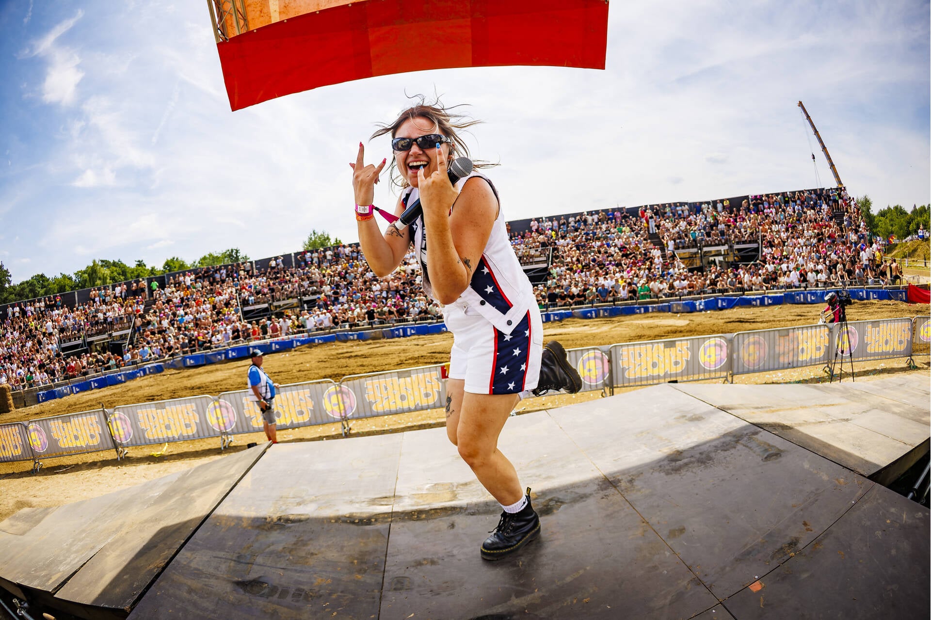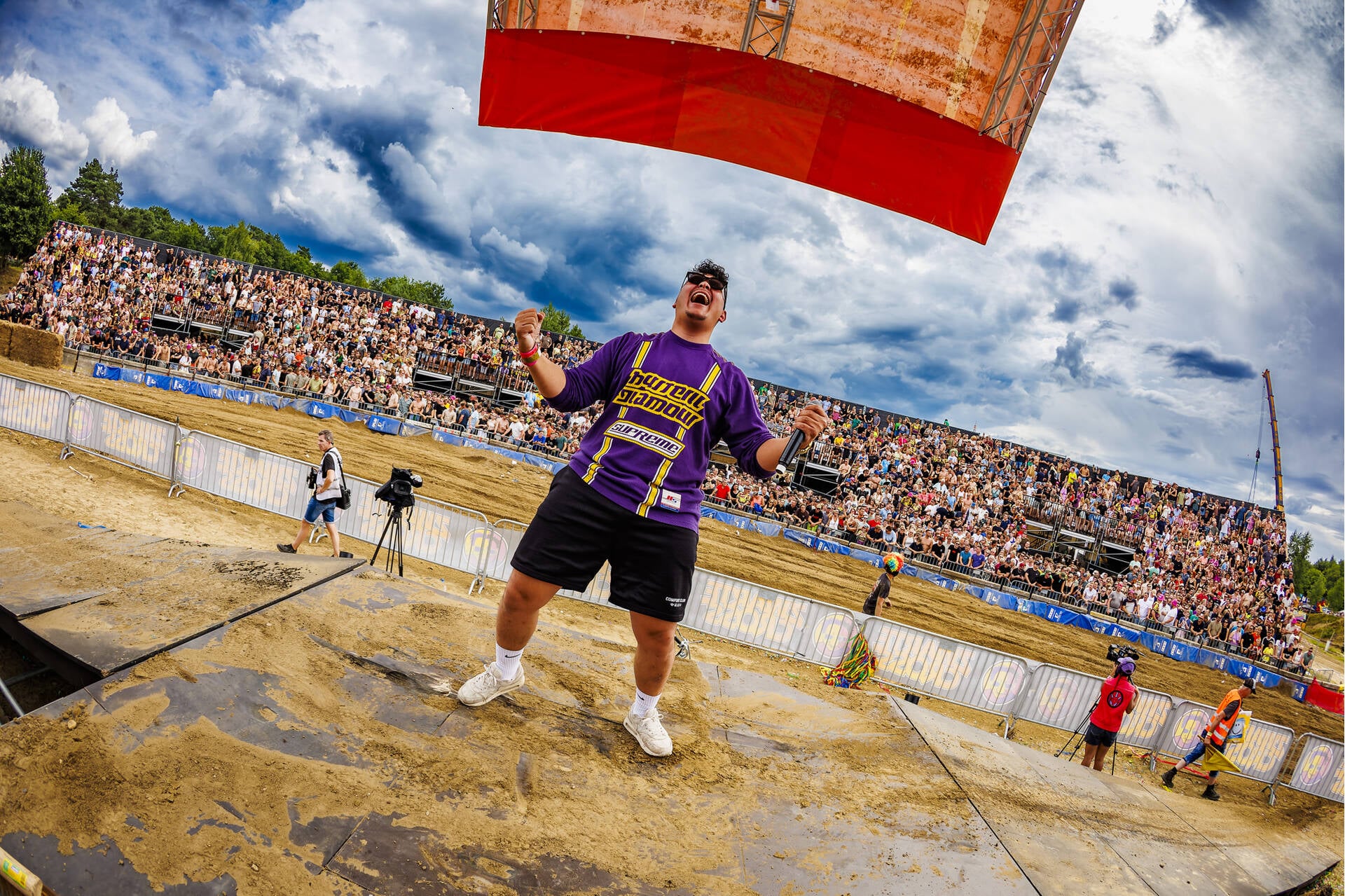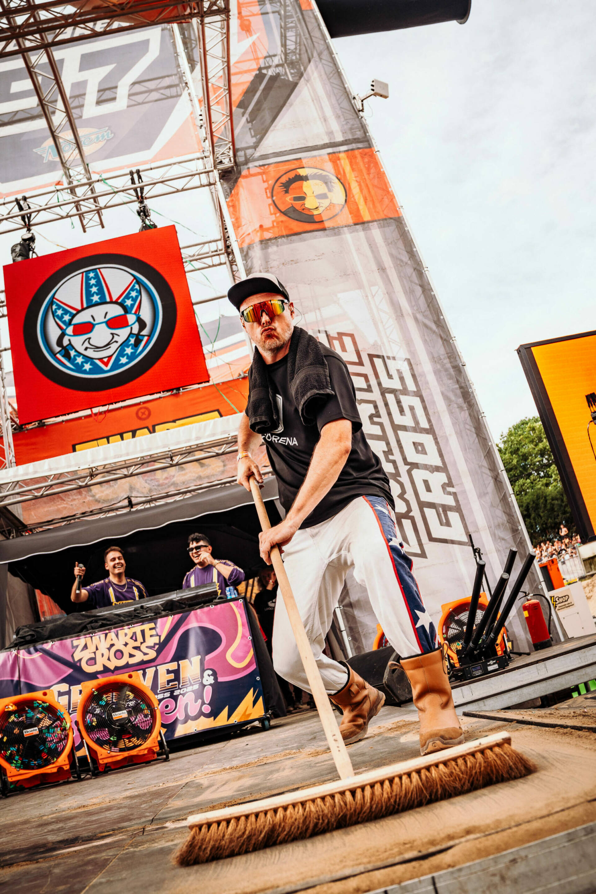 Een van de beste plekken langs de crossbaan! Middenin de Loco Arena houden onze kameraden van de Loco Loco Discoshow het feest aan de gang.