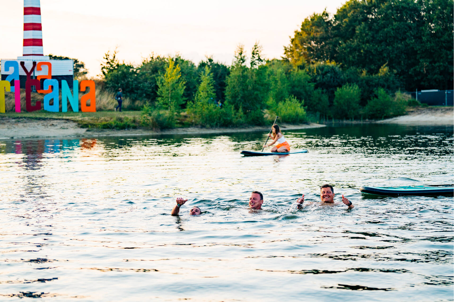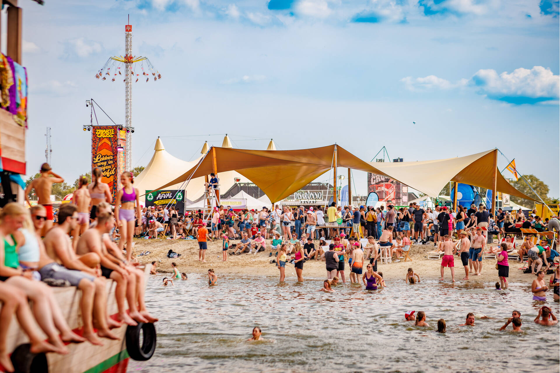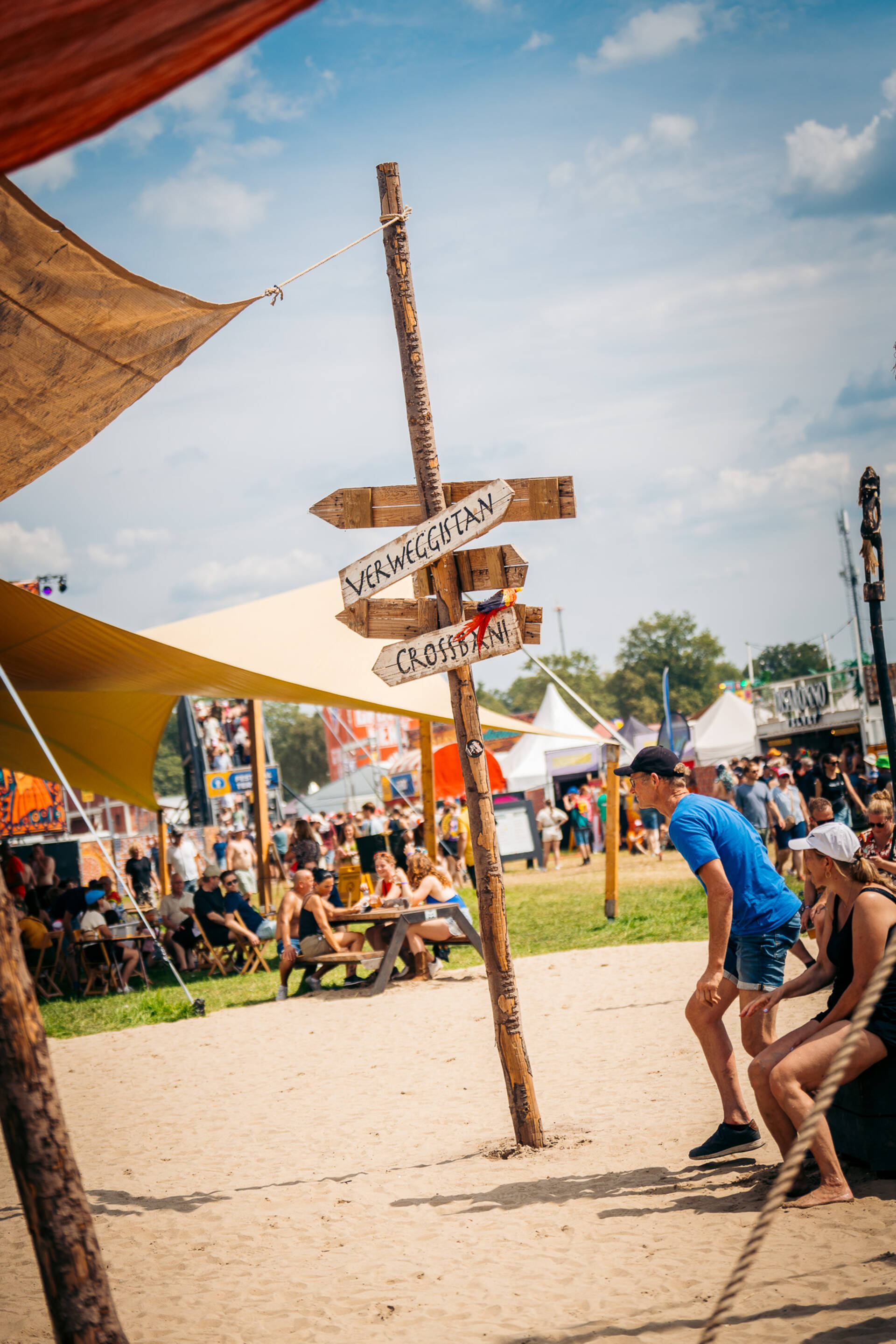 Zie je die grote gekleurde letters met ‘Playa Exoticana’? Nou, de Playa is dus het ‘Playa’-gedeelte daarvan. Best logisch eigenlijk. Het strand van de Zwarte Cross, de uitgestrekte oase in al het festivalgeweld. Even weg van de ronkende motoren en scheurende gitaren. Pak een strandstoel, neem een massage of duik de zwemplas in voor een Natte Cross!