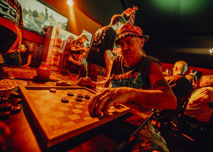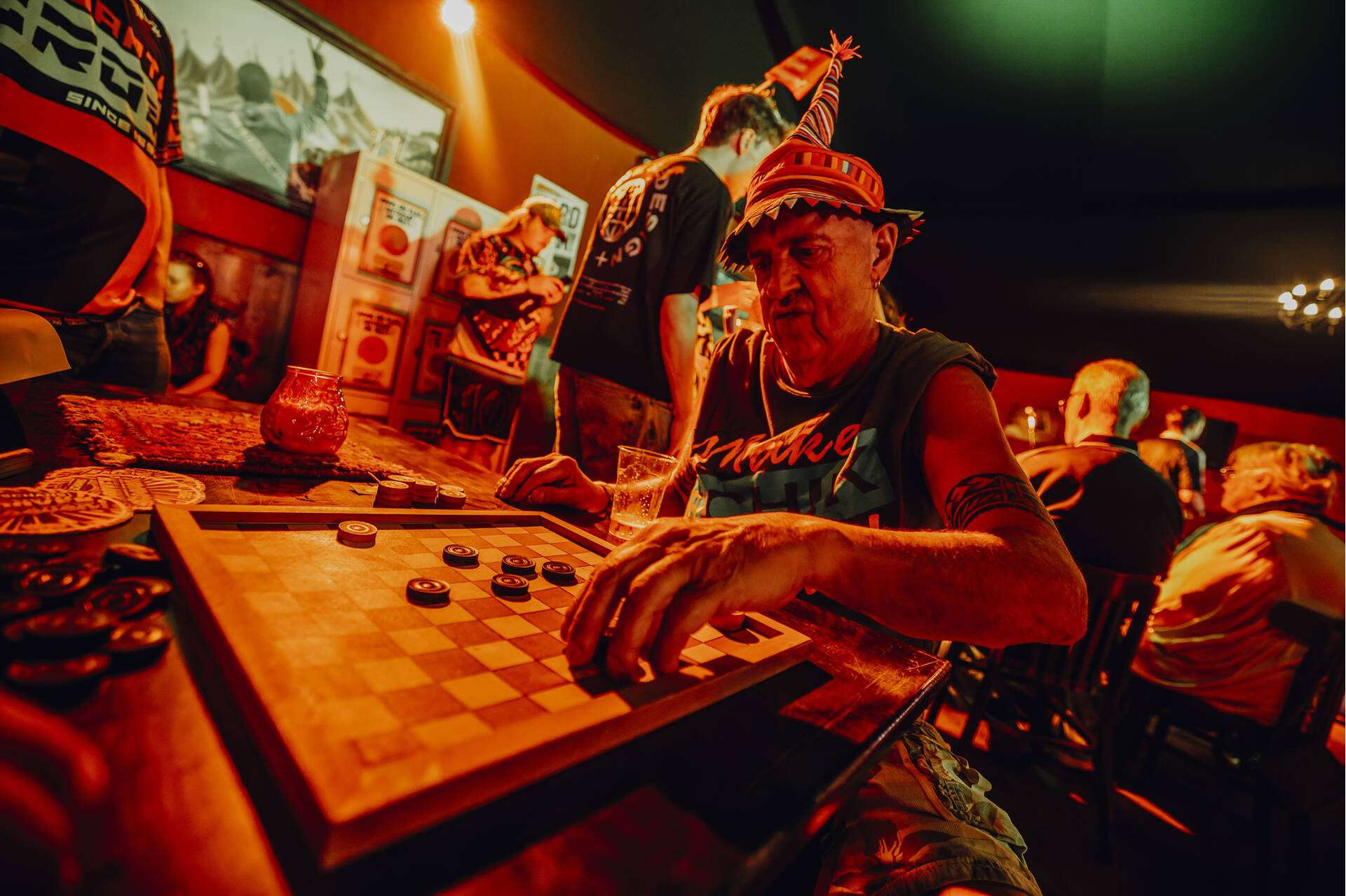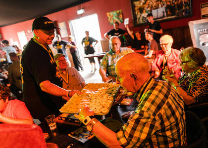 Marga Klompé is de uitbater van Stamcafé de Schans! Nog altijd kun je hier je koude biertje van de tap krijgen en een praatje maken met de kastelein. Overdag is het ouwe-jongens-krentenbrood, Nederlandse klassiekers schallen door de radio, vaste gasten op de kruk en dit jaar komen de oudere Zwarte Crossers van Marga Klompé muziek maken, grootmoeders hapjes uitdelen, klassieke broodjes verkopen, een potje kaarten en bovenal de wat jongere Zwarte Crossers van wat raad voorzien. Eigenlijk is het sfeertje in Stamcafé De Schans precies hetzelfde. Gewoon ouderwetse gezelligheid.