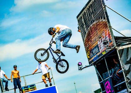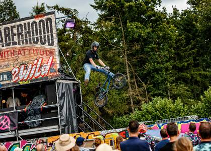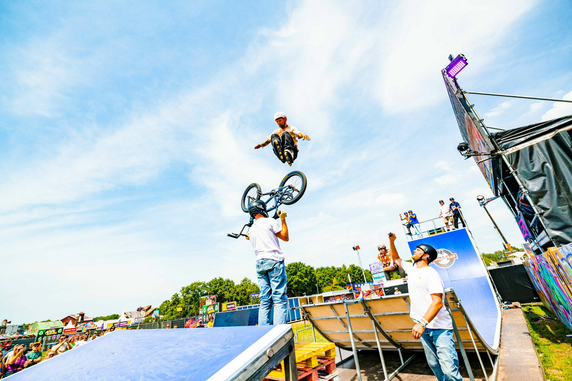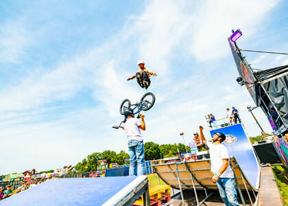 De gasten van Mind The Gap rollen weer The Noaberhood binnen tijdens de Zwarte Cross. Inline skaters en BMX-acrobaten geven demonstraties vol salto’s, grinds en 360’s. En oh ja: pas op je biertje, want voor je het weet wordt deze door één van de gasten uit je handen gegrepen!