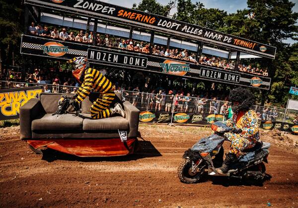 Hoongelach valt je ten deel wanneer je denkt dat je met het ‘less is more’-principe de blits kunt maken. De keurmeesters van de Bromfietsklasse zijn als een stelletje bloedhonden, wanneer zij een laf ontwerp ruiken vreten ze jou en jouw brommertjen met huid en knalpiep op. Verschijn je halfbakken aan de start dan zul je voordat je gas hebt gegeven alweer met een doorgebeten bandje buiten het festivalterrein staan. It’s a hardknock life! Wees gewaarschuwd! Heb je zelf echt geen inspiratie? Tante Rikie deelt hier wat gratis Bromfietsklasse concepten uit: de Ponypletter en de Zwarte Rosser. Doe er je voordeel mee! Maar goed, dit begint wel een heel negatief nöhlverhaal te worden. Gelukkig staan er vooral geniale creaties aan de start.