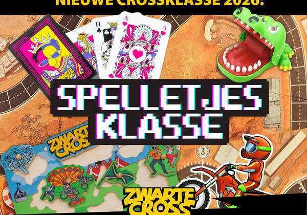 De Zwarte Cross is één grote speeltuin, en de Spelletjesklasse is een ode aan die speeltuin. Deelnemers mogen zich uitleven en met rijdende bouwwerken rondscheuren die gaan over hun favoriete spelletje. Dat kan spijkerpoepen of haasje over zijn, maar ook tennis, rummikub, verstoppertje, klootschieten, doktertje spelen (dat is toch echt wat anders dan klootschieten) en schommelen. Zelfs pesten is een spelletje, mits we het over de kaartvariant hebben. Dan zijn er natuurlijk ook tv-spelletjes en laten we ook de digitale spelletjeswereld niet vergeten. Van Mario Kart naar GTA en van Tetris naar Duke Nukem 3D en Habbo Hotel. Moge de beste winnen!